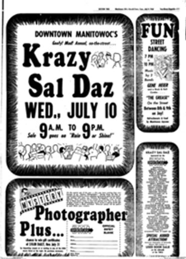 When Krazy Daze first appeared on Wednesday July 15th,1959 it was the largest sale event in all of Northeastern Wisconsin. The original event was designed to be a huge city wide sale.